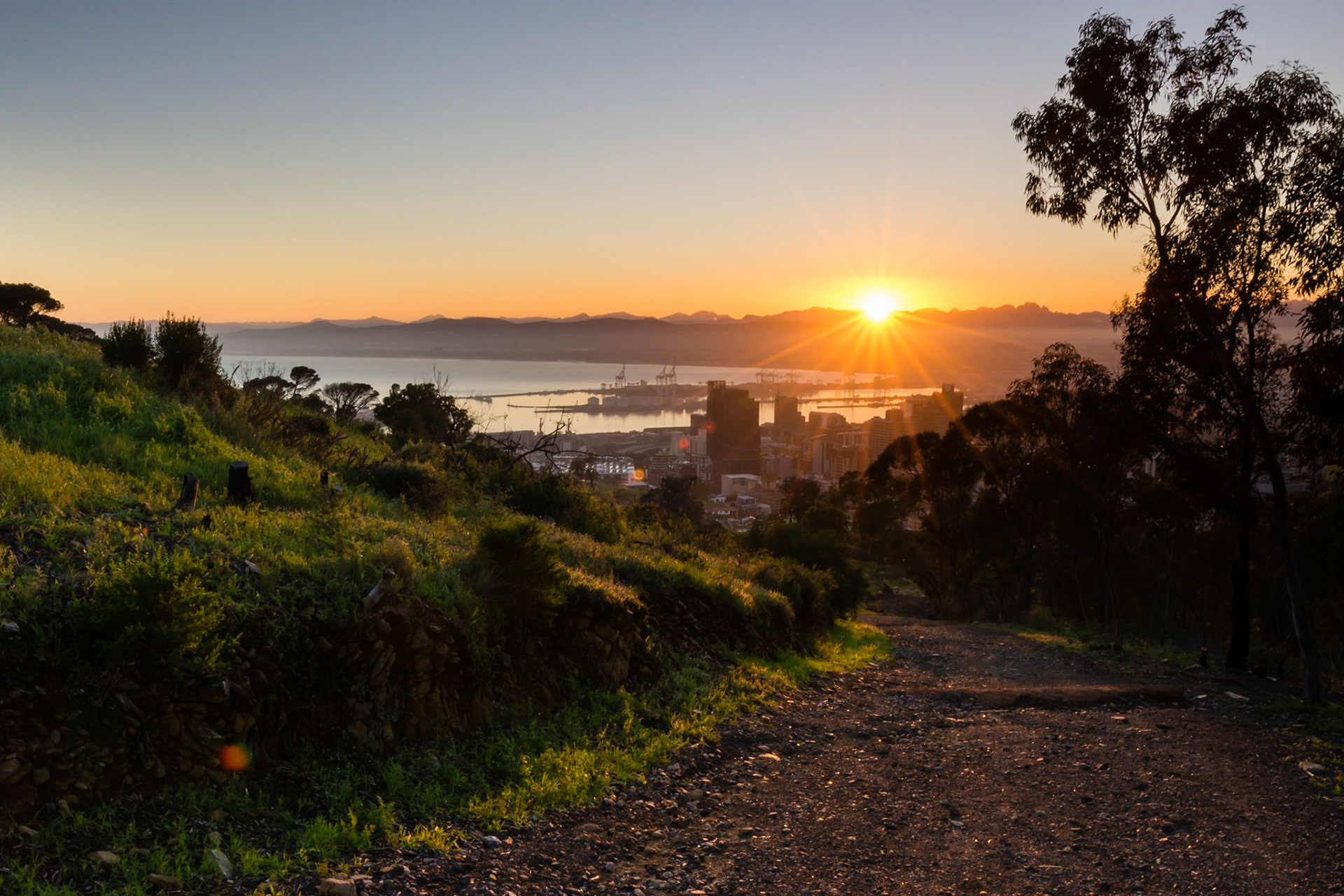 A beautiful sunrise over Cape Town, viewed from one of the paths on the side of Signal Hill