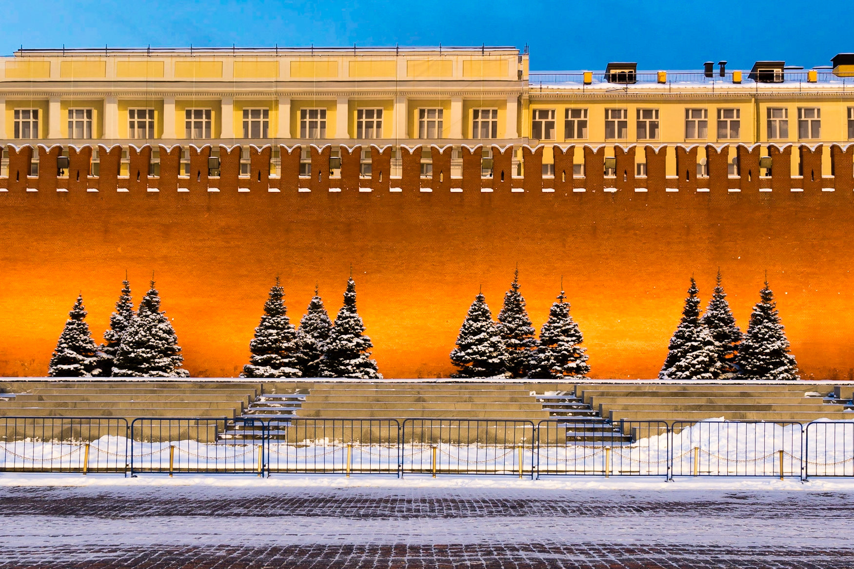 The clear skies and low temperatures led to an intense blue-hour after sunset, exaggerated by the illuminated Kotelnicheskaya Embankment Building. A slightly different composition