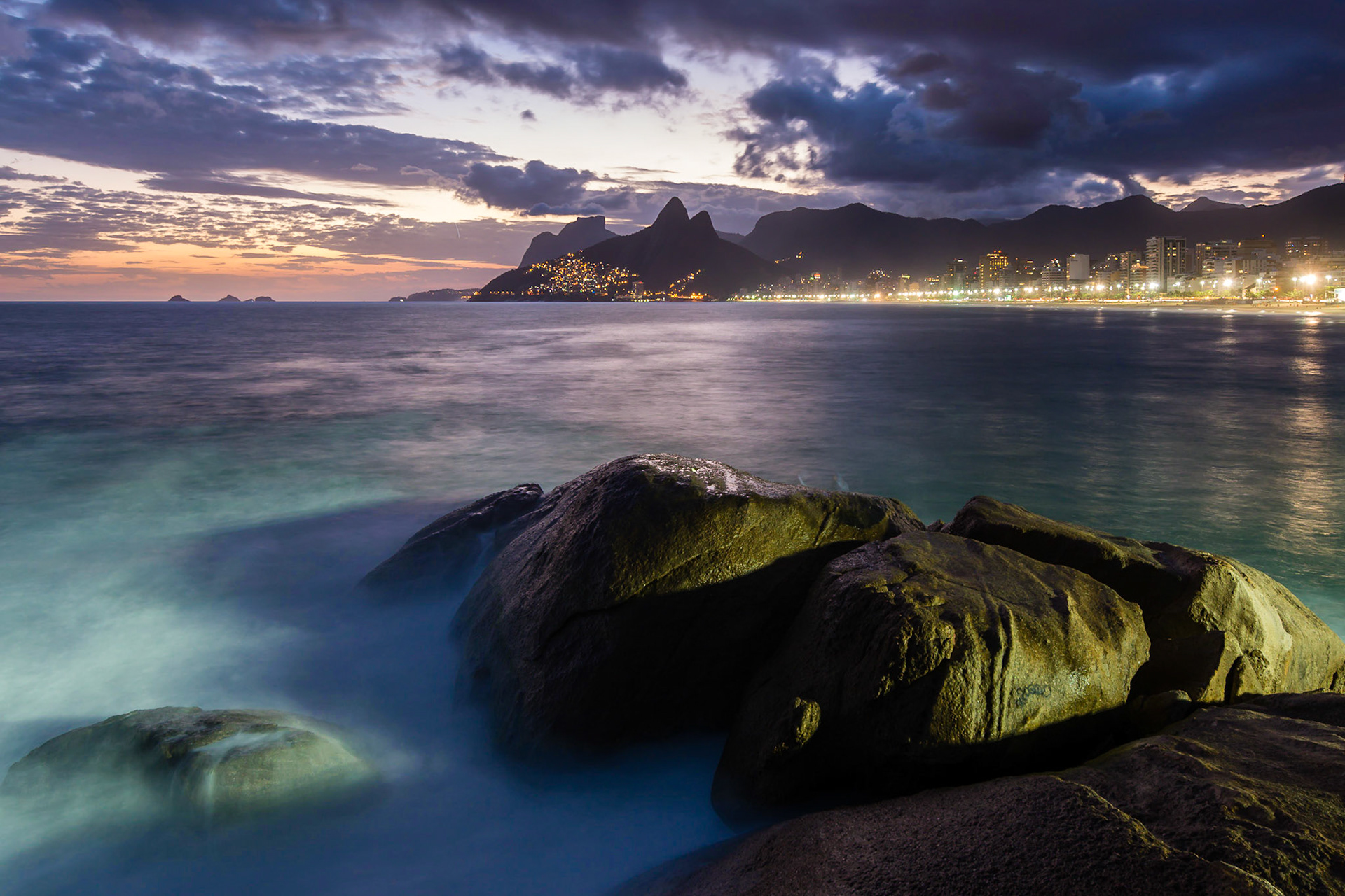 While watching the sunrise at Ipanema Beach I spent some time practicing longer exposures, using this rock as the subject.