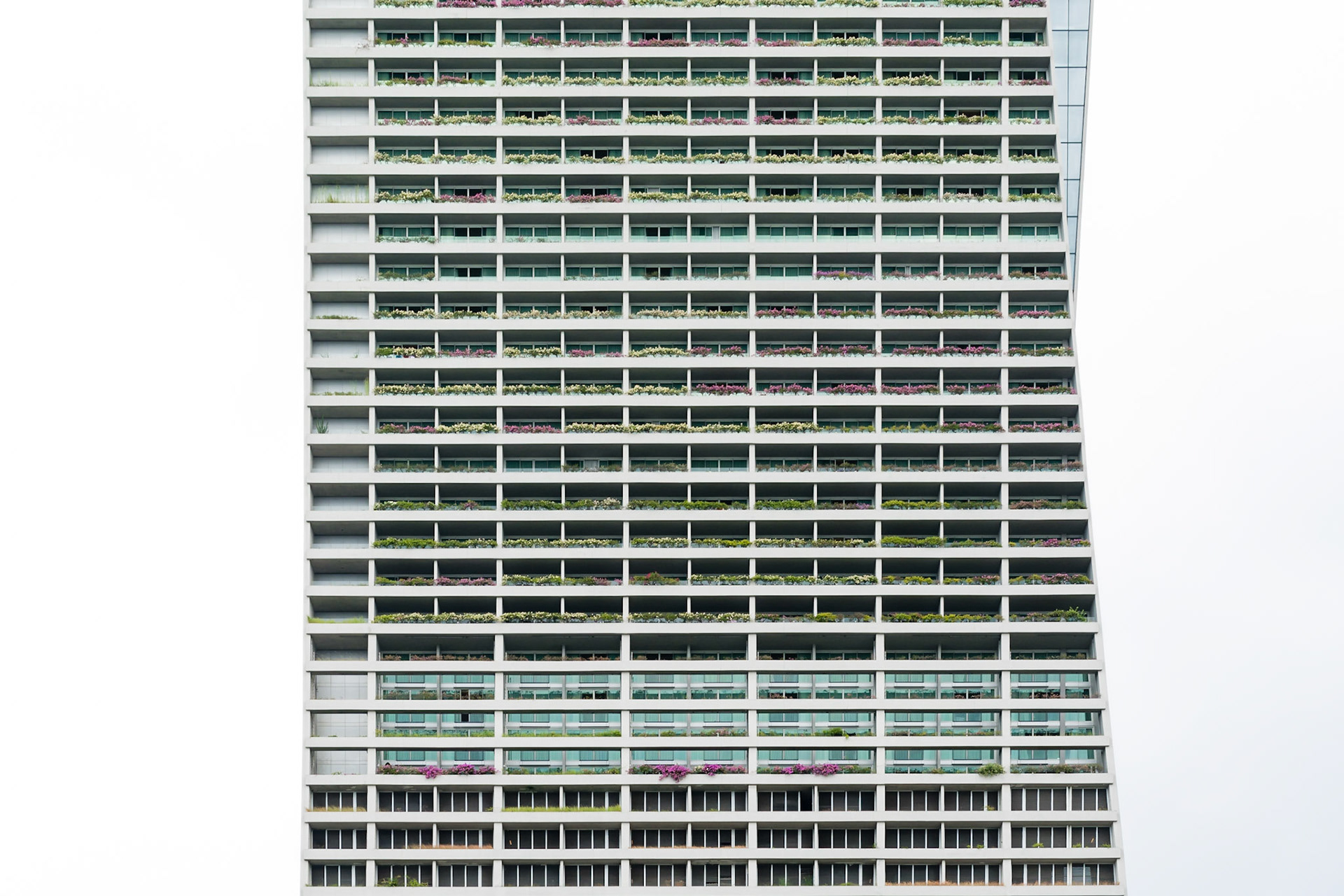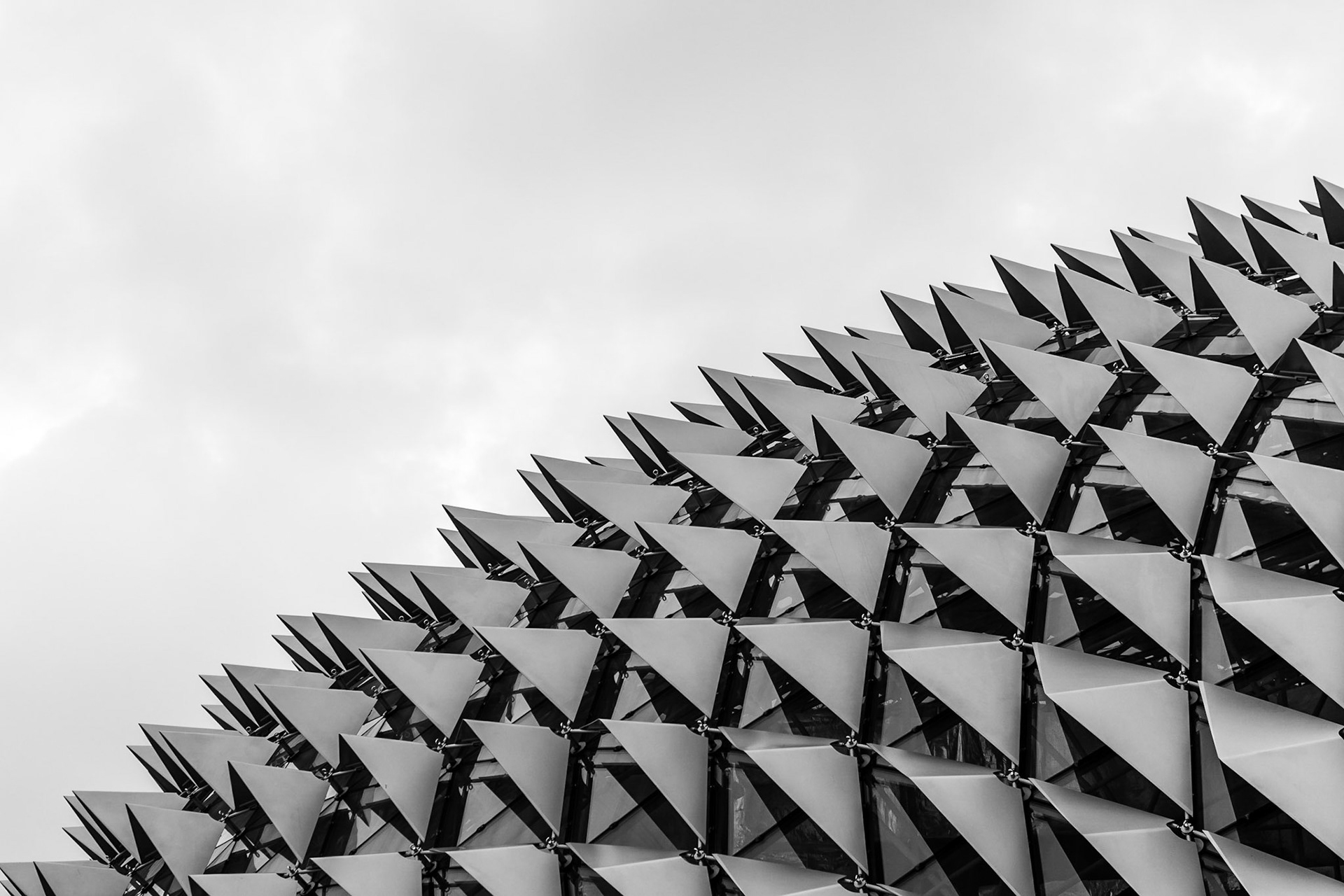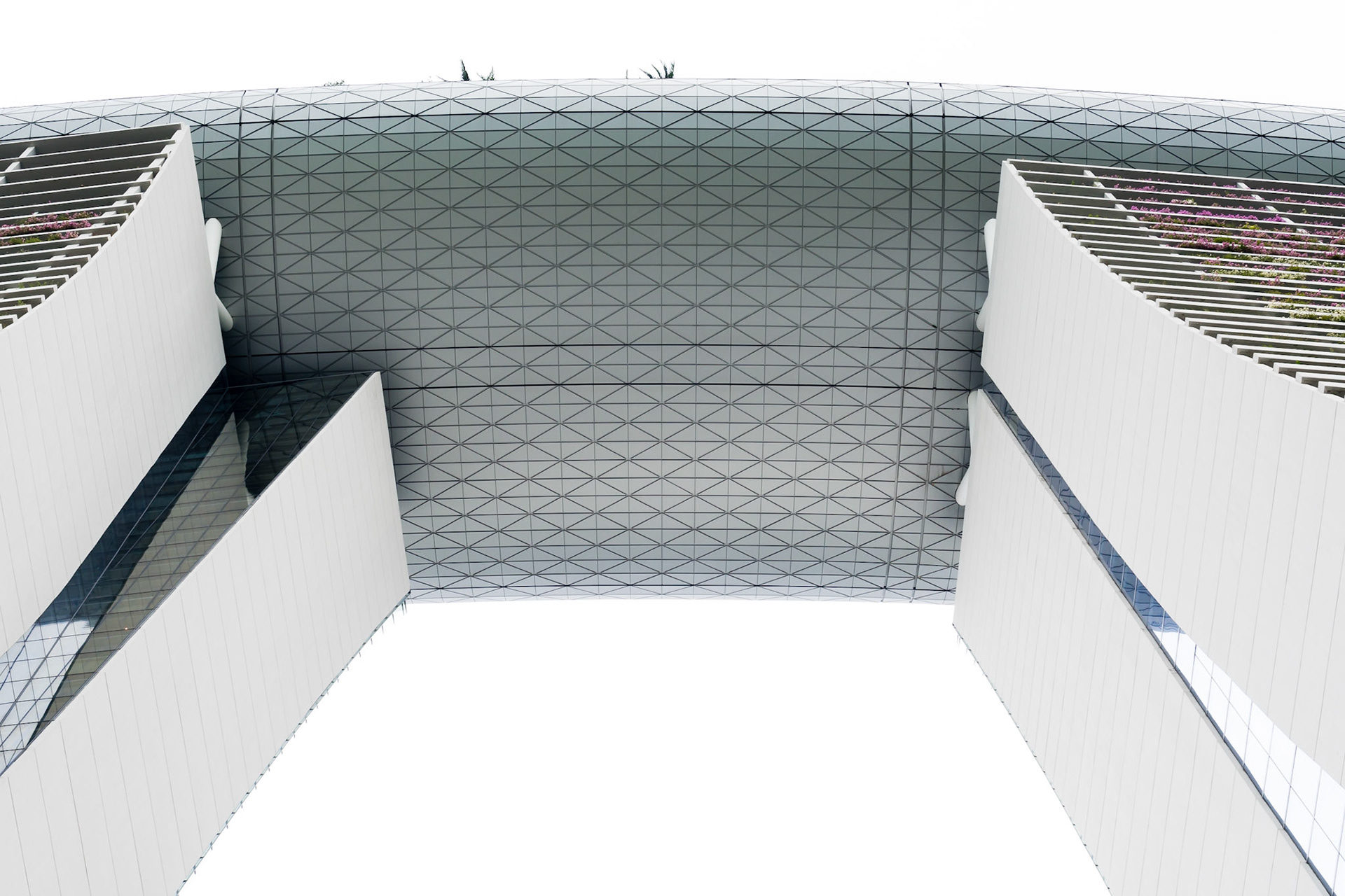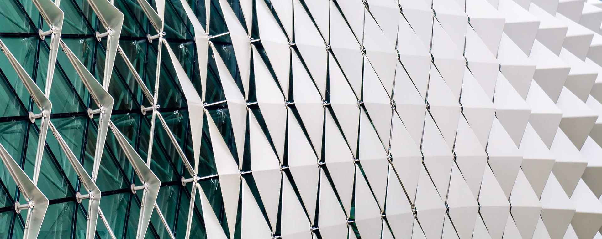 A close-up view of the laser and light show from the Marina Bay Sands towers in Singapore.