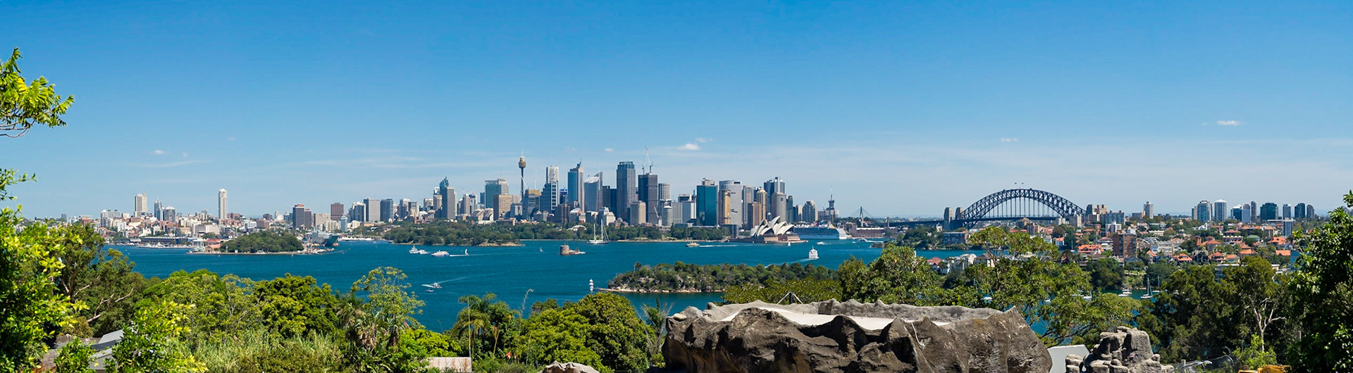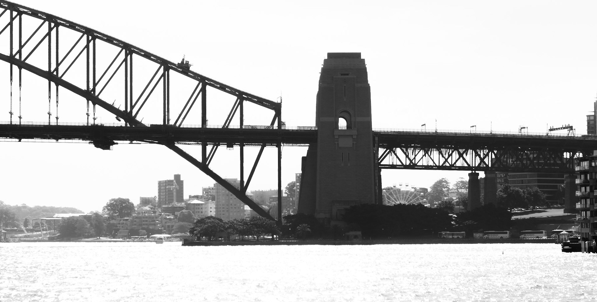 This panorama encompasses the Harbour Bridge, North Sydney, Dawes Point and Walsh Bay