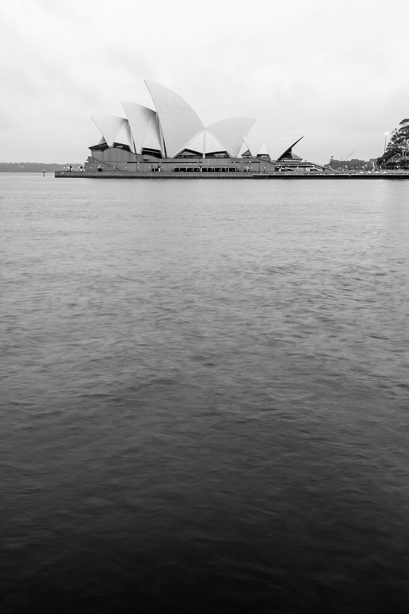 The sunset this evening didn't have a lot of colour, which suited black-and-white photography. This picture is taken from the rocks at Mrs Macquarie's Chair on Farm Cove.